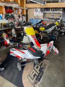 Acheté chez LAP’S Racing Kart au Mans, il repose sur un châssis d’occasion de 2021 (victorieux au Défi France, piloté par Erwan Le Coz) et une majorité d’accessoires de 2019. J’ai pris l’option frein hydraulique KFS, réservoir extractible, tendeur de chaine amovible, cale de volant inclinée, siège baquet Tillett.